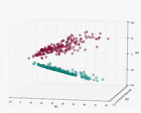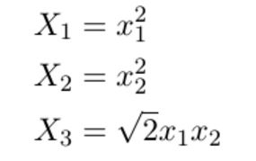 仍然从上图中的数据集为例,然后将其映射到三维空间中,其中新的坐标为: