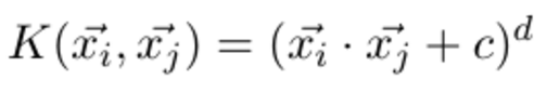 大部分 SVM 程序库已经经过预包装并包含了一些很受欢迎的核函数比如多项式,径向基函数(RBF),以及 Sigmoid 函数。当不使用映射的时候(比如文中第一个例子),我们就在初始空间中计算点积,我们之前提过,这叫做线性核函数(linear kernel)。很多核函数能提供额外的手段进一步调整数据。比如,多项式核函数: