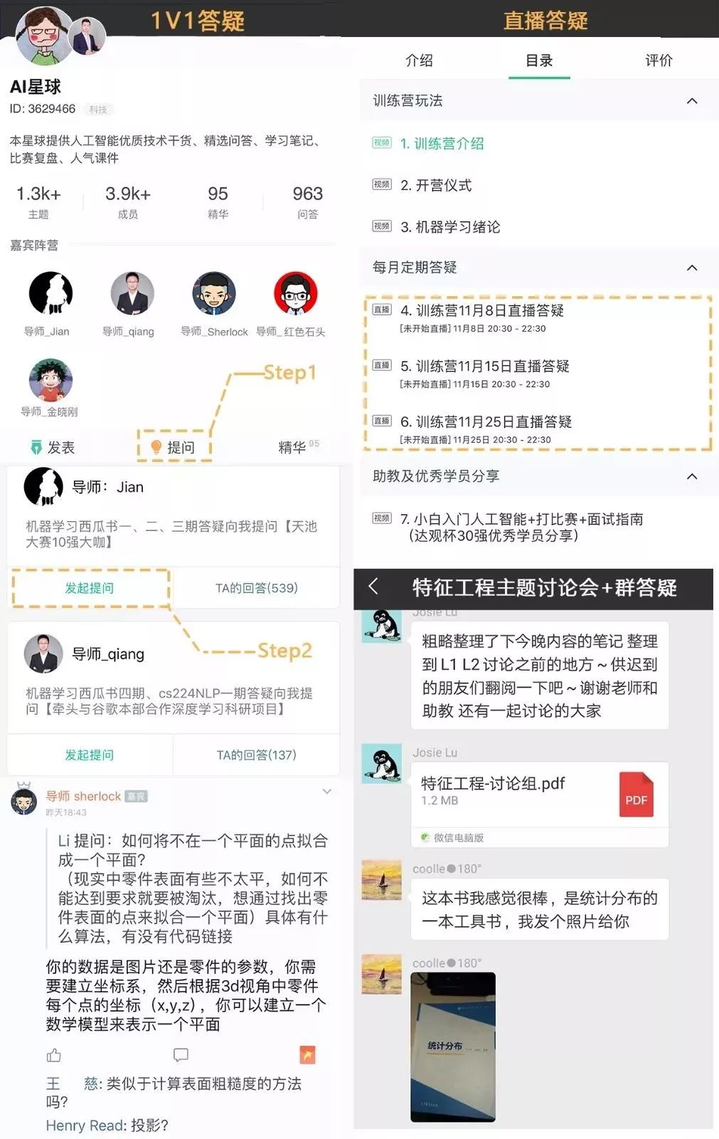 1、专属价值1198元知识星球学习名额,5位重量级人工智能大咖坐镇,一年服务时间,解决你的学习疑难