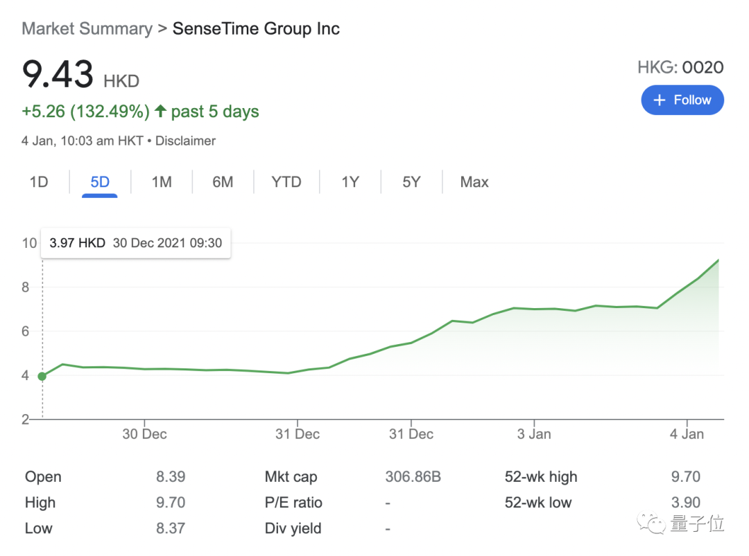12月30日在港上市后,商汤在4个交易日内,连续走高,并且今日早盘,股价上涨一度超过20%。