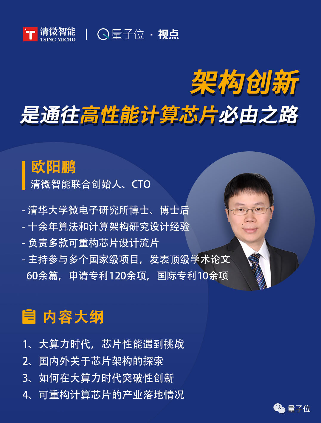围绕可重构计算架构芯片的探索、创新与商业落地等,清微智能联合创始人兼CTO欧阳鹏在「量子位·视点」直播中分享了他的从业经验和观点。