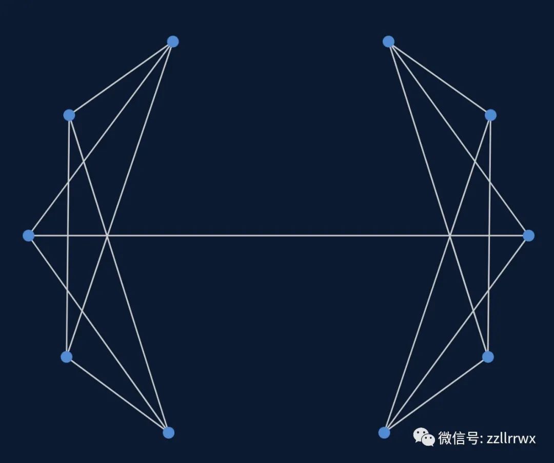 扩展或连通性的概念可以通过多种方式来衡量。一种是通过一个接一个地剪断边,将一个图切成两个大块。如果你的图由两个结点簇组成,并且这些结点由一条边连接,则只需切割一条边即可将其分成两部分。图的连接越多,你必须切开的边就越多。