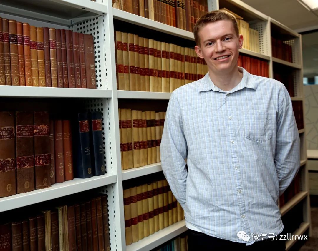 书架前的男人。丢给达勒姆大学的博士生William Hide的项目最终比预期的要重大得多。