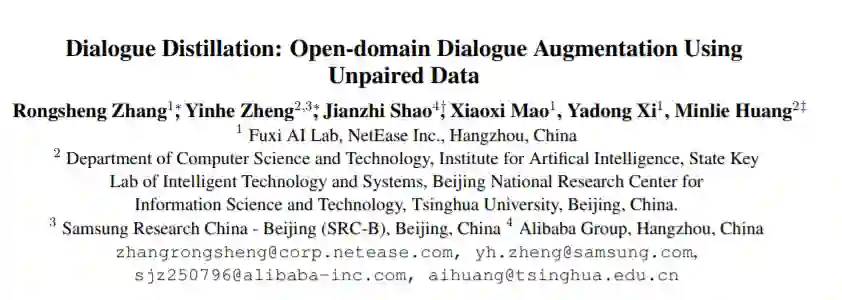 标题:Dialogue Distillation: Open-domain Dialogue Augmentation Using Unpaired Data