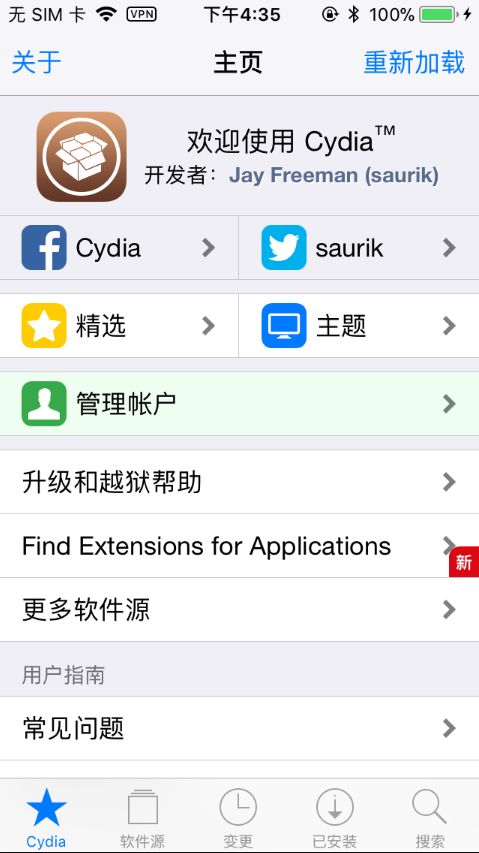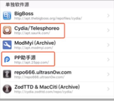 软件源:http://apt.saurik.com与http://apt.25pp.com