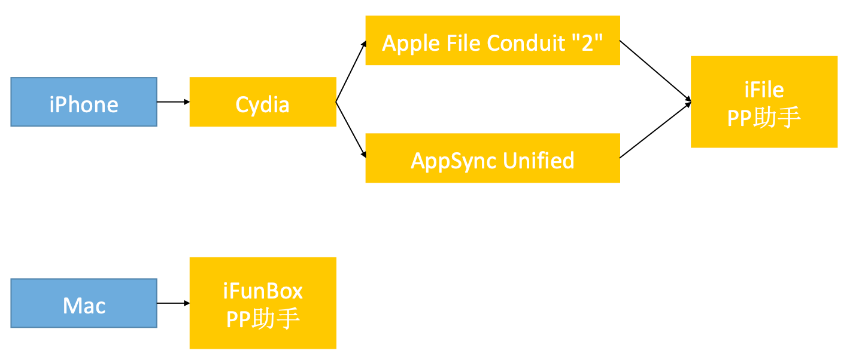 补丁的作用(可以访问整个iOS设备的文件系统;类似的补丁还有:afc2、afc2add),可以使用工具 iFunBox