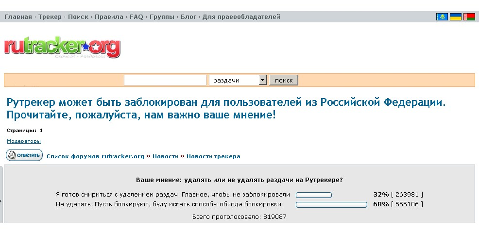 据 Lenta.ru 报道,他们发现 RuTracker 近日从 Roskomnadzor 的禁止登记册中消失,这意味着俄罗斯最大的盗版资源网站 RuTracker.org 被解封。