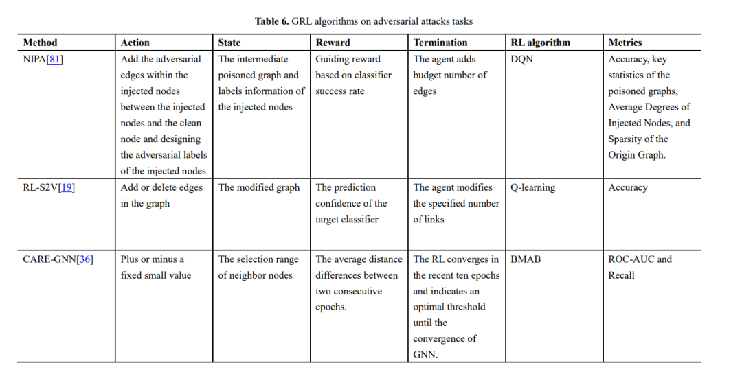 利用RL方法解决图数据挖掘问题的现有方法主要集中在网络表示学习、对抗攻击、关系推理等方面。此外,许多实际应用从不同的角度研究了GRL问题。本节将详细介绍GRL的研究进展。