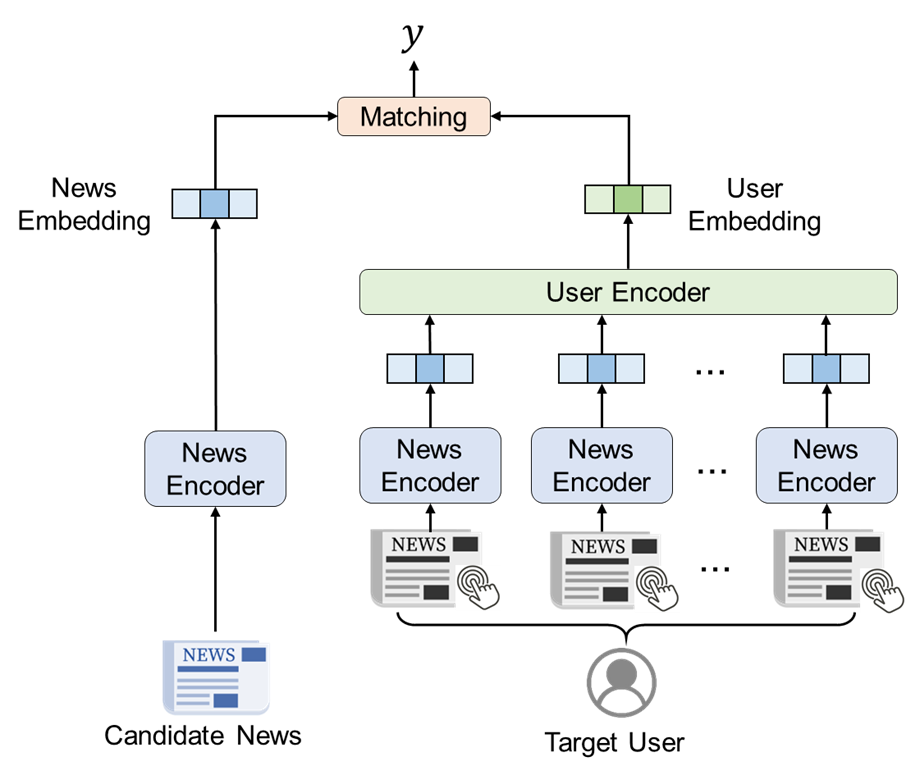 新闻推荐属于一种特殊的个性化推荐,相比于商品、电影等内容的推荐,新闻事件每时每刻都在更新,对于系统来说每条新闻都是全新的内容,这就使得系统无法获得足够的用户交互数据来训练推荐模型,因此,必须从新闻本身出发,加强对内容的理解。尽管之前也有针对新闻推荐的算法模型,但那些模型给用户推荐的往往是同质化的新闻,极易造成用户反感,难以精准匹配用户对新闻的实际需求。