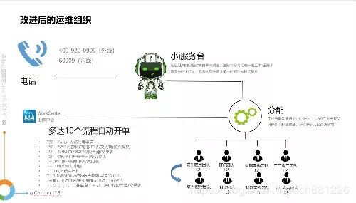 第三阶段,就可以完成自动化的链接,此处他列举了上海某汽配零件公司针对小i机器人的尝试。罗琦介绍说:“企业最初投身IT服务管理,很重要的一个尝试就是小i服务台。产品起初在微信公众号上绑定,提请用户有故障找小i,对于外界来说就像一个智能助手的后台服务模式,可以在系统中查看IT请求与服务以及进展与评价等详细信息,最重要一点是让大家熟悉这个机器人形象。”