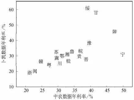 图1 中农数据和卜凯数据的年利率比较