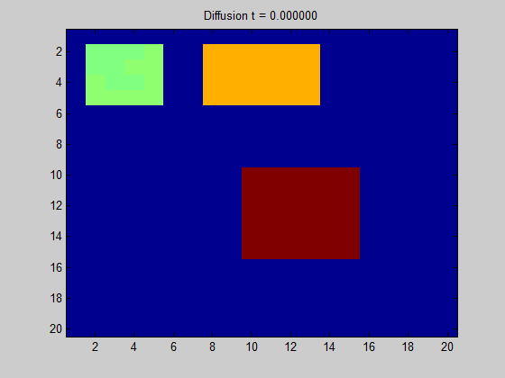 图3:基于拉普拉斯图的规则,网格图中某些信号的扩散。基本上,计算这些动力需要节点(像素)中的拉普拉斯算子和初始值,即与高强度(热)对应的红色和黄色像素相对应。