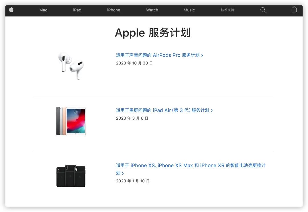 Apple 服务计划提供了包括更换计划、维修扩展计划和召回计划等在内的查询服务,最新的案例是适用于声音问题的 AirPods Pro 服务计划。