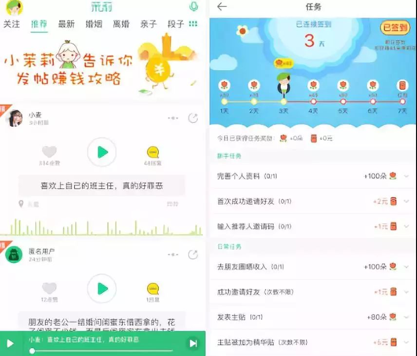 茉莉社区也尝试过趣头条的获客模式,靠着红包激励,带来了用户的短期快速增长。而一旦停止了红包补贴,这些人也潮水般退去。如何满足他们在红包之外的需求,一直是创业者们在苦苦探寻的方向。
