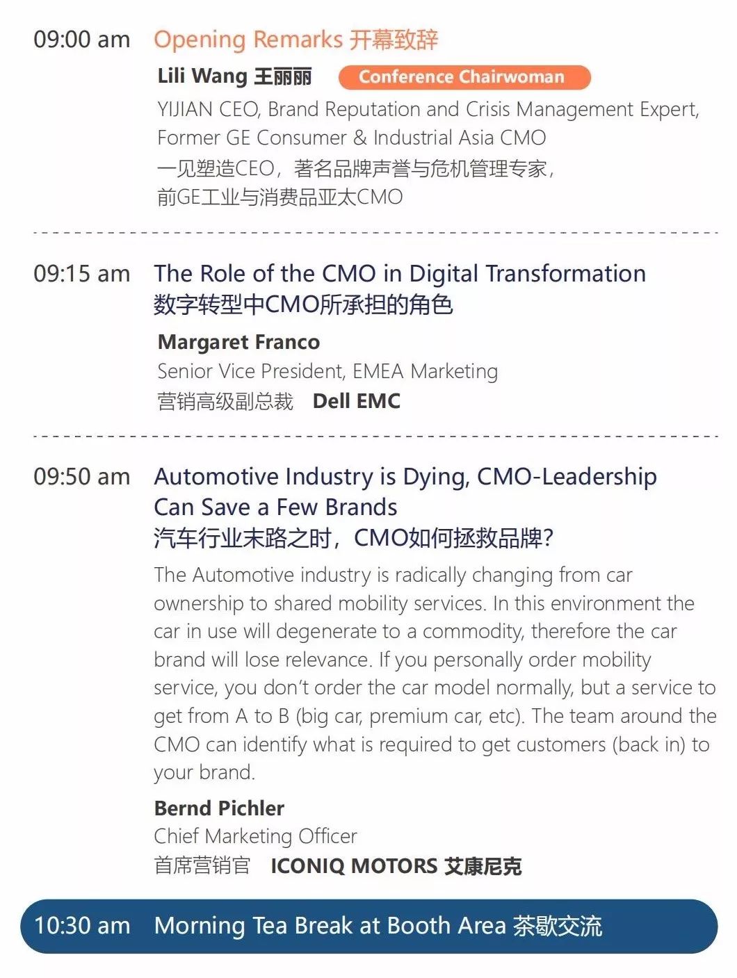 LELE CHA乐乐茶副总经理、惠普亚太地区CMO、前GE工业与消费品亚太CMO的都将作为主题演讲嘉宾出席本次峰会。