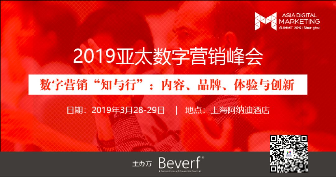 机会来了!3月28-29日,2019亚太数字营销峰会,30+来自行业领先企业的营销高层将为营销人带来行业真知分享和实战案例指导,助力品牌建设,促进企业成长。