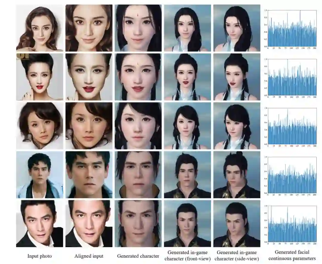 最近,来自网易伏羲实验室、密歇根大学、北航和浙大的研究者发表新研究,提出了一种按照输入人脸图像自动创建游戏人物的方法。研究者基于人脸相似性度量和参数搜索机制实现「对人脸图像的艺术加工」,通过在大量具备物理意义的面部参数空间中执行搜索来解决优化问题。