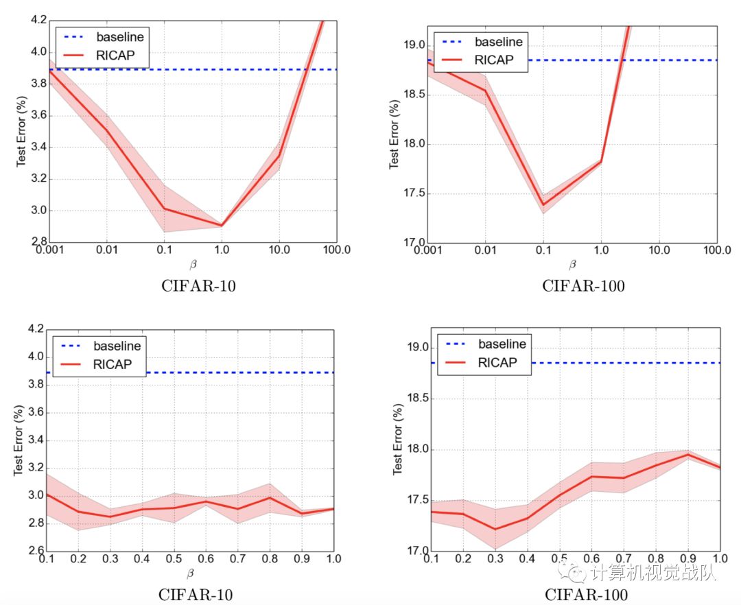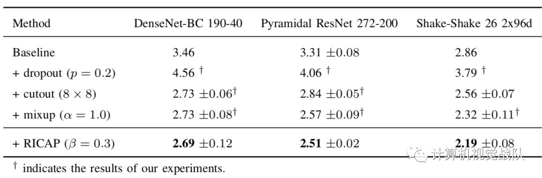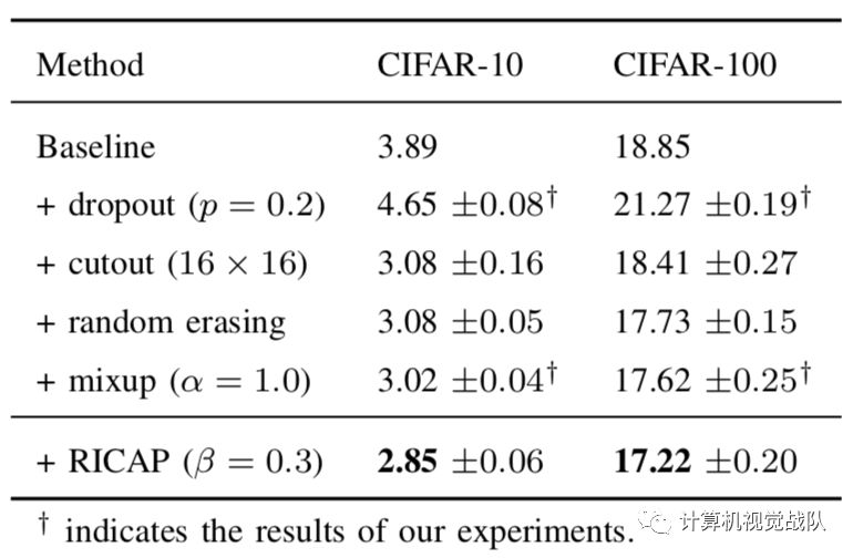RICAP与裁剪、混淆和标签平滑共享概念,并有可能克服它们的缺点。剪裁掩盖了图像的一个子区域,而RICAP产生了一个图像的子区域。在每个训练步骤中,两者都会改变图像的明显特征。然而,遮掩只会减少每个样本中可用特征的数量。相反,提出的RICAP补丁图像,因此修补图像的整个区域产生了有助于培训的特性。