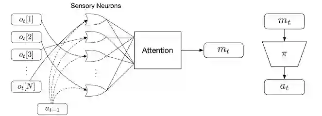 文中提出的研究方法在每个时间步中从环境中进行观察,并将观察的每个元素馈送成明确(distinct)但相同的(identiccal)神经网络,也称为感觉神经元(sensory neurons),网络之间彼此没有固定的关系。
