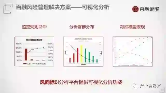 我们用一些可视化的算法使金融机构和我们监管人员看得更清楚,规则有没有命中,客群分布怎么样。在客观的分数段中,比如我们公司是300分到1000分,比如700分的人对应100个人里只有3个人违约,而500分的人对应100个人里头有7个人违约,不同的分数段意味着不同的违约率,这个时候你就知道我应该给700分以上的放贷。这个评分对金融机构很重要,你算清楚每给500分的人放款一万块钱出去会亏多少钱,评分系统会帮你预测。