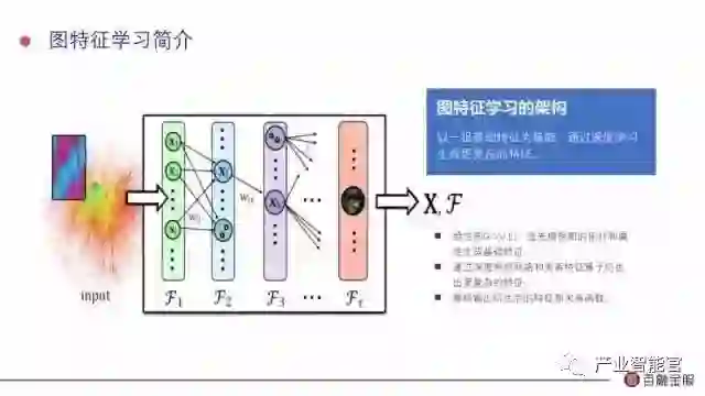 这是图特征学习算法大概的框架。因为我们输入的是我们客户图的特征,这张图包括边和点,图的拓谱和节点的这些属性构造了客户的基本特征。通过深度神经网络,从这些基本特征出发衍生出更复杂的特征。最终我们输出的是什么?一个是衍生后的特征,再一个是观察,观察为了从基础端衍生数学特征,把这个算法形成好东西移植到其他部分。