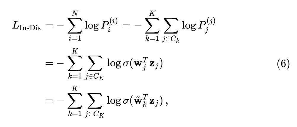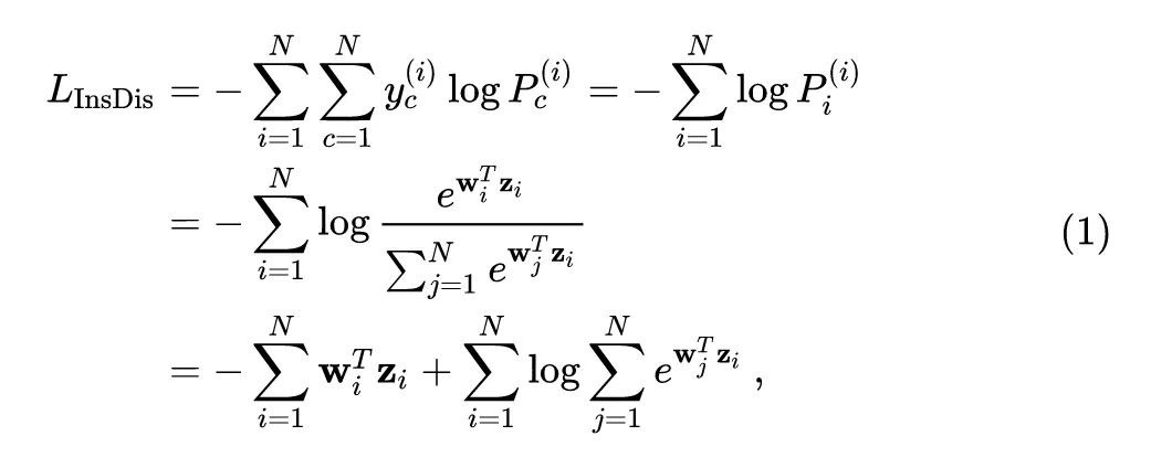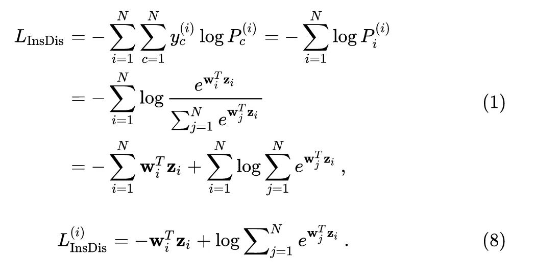 式中的角标 代表 instance 的索引,角标 代表类别的索引。因为 Instance Discrimination 任务数据集的类别数,正好与图片的数量相等,故这种任务的标签有一定的规律,即: 。