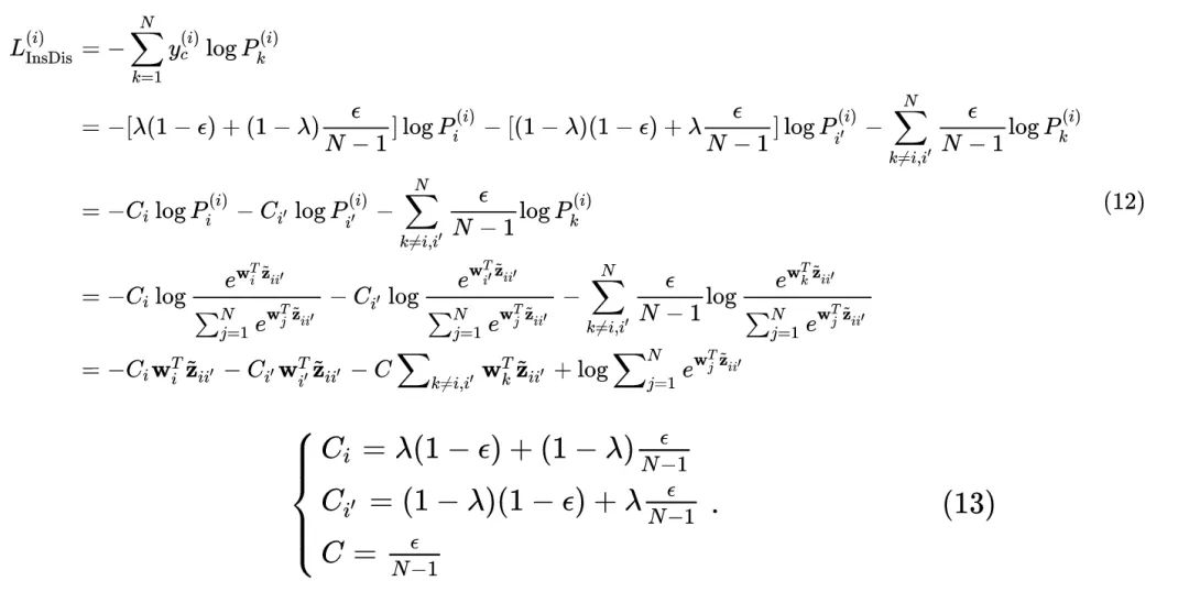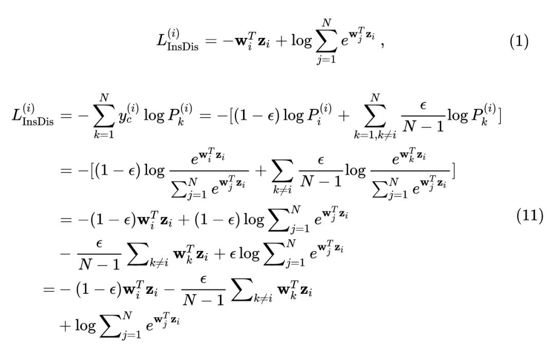 式中, 代表 smoothing factor,默认设为0.1。至此,Instance discrimination 任务的损失函数从1式变为11式: