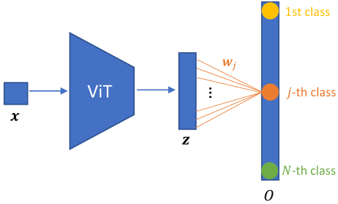 如上图1所示,假设输入图片 送入网络 ,得到输出的特征是 ,式中 为图片的数量。之后通过一个 FC 层 作为分类器完成分类任务,其中 为特征的维度, 为数据集的类别数,正好与图片的数量相等。最终的输出结果为 。我们把这个过程统称为 Parametric Instance Discrimination。