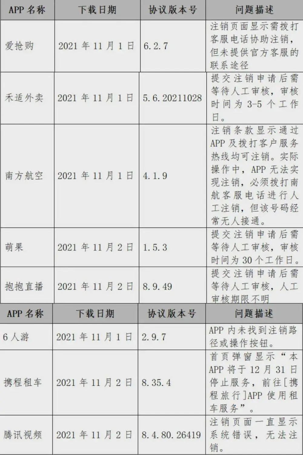 让用户更糟心的情况如人工审核无人受理、无法通过App直接注销也出现在中消协的报告中,有网友看到名单表示:这只是冰山一角。