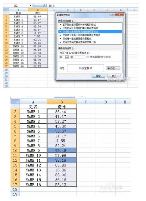 条件格式可以当作数据可视化的应用。如果我们要使用函数在大量数据中找出前三的值,可能会用到rank( )函数,排序,然后过滤出1,2,3。