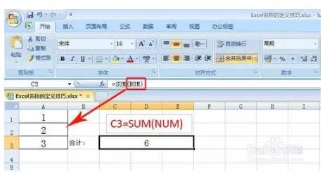直接使用=sum(NUM) ,等价于sum(A1:A3)。