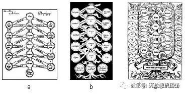 这句话的核心是一个事件,触发词为 give(过去式gave),该事件的主体(施事)是 John,对象是一个物体,该物体是一本书,客体(受益者)是 Mary。这种表示方法到现在还是继续采用的。语义网络提出的时候,有一些研究人员评论说,语义网络没有自然语言更适合表示人类的知识。这其实就引发了一个讨论,对于人类的自然语言来说,什么样的表示方法是合理的?是直接用我们的自然语言的句子表示呢,还是用谓词逻辑的线性表示(https://www.cs.cmu.edu/~fp/courses/15317-f00/handouts/linear.pdf),还是用图来表示(即语义网络),还是用向量(即最近比较火的word embedding),或者用张量。John Sowa 指出,早在 3 世纪 CE 希腊哲学家、逻辑学家 Porphyry 就提出了用图来表示亚里士多德的分类(Porphyrian tree - Wikipedia):