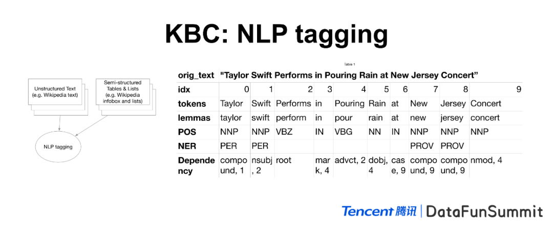 接着做实体抽取。例如,我们可以从以上例子中抽取“Taylor Swift”和“New Jersey”两个实体词,前者是人物,后者是地点。