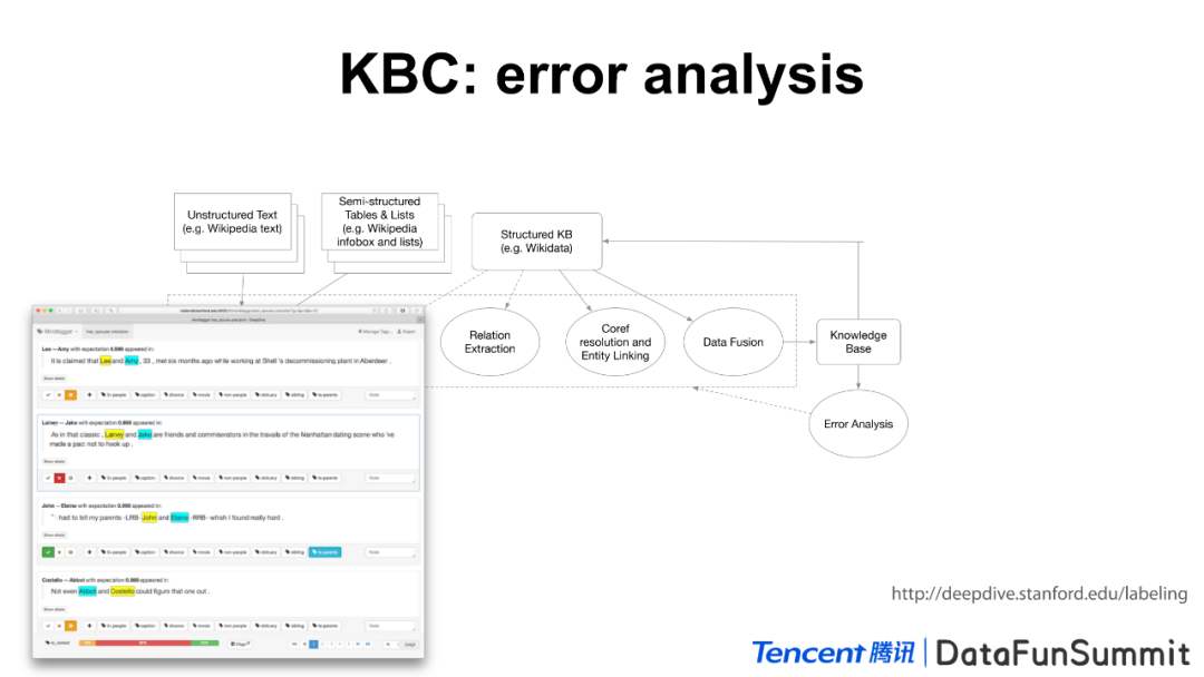 错误分析贯穿于知识库构建中的每一步,我们要进行大规模的抽样并验证抽取的准确性,不断地迭代模型。