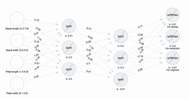 此外,机器学习的经典实例之一是1936年的鸢尾花数据集。在参加JavaFXpert的机器学习概述的演示中,我学会了如何使用工具来可视化调整和反向传播神经网络上神经元的权重。可视化过程可以让我们看到它是如何训练神经模型。