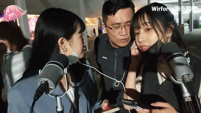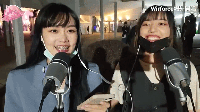 近日,在中国台湾地区举办的电竞嘉年华活动Wirforce的场外,两个主播妹子在街边支两个话筒,在开直播唱歌。