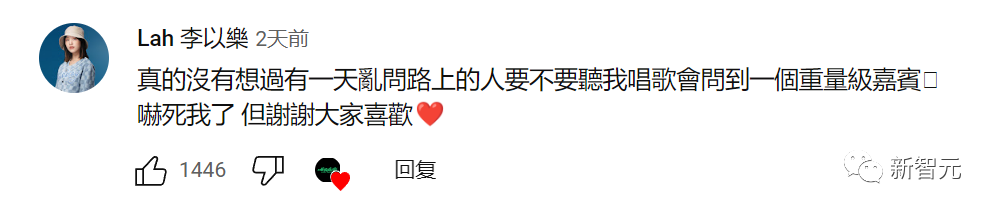 歌手「Lah 李以樂」在评论区表示,能和如此重量级嘉宾互动,真的是吓死,感谢大家喜欢!