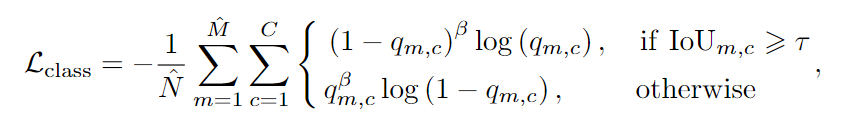 分类方法第二步:为每个存活的proposal分配一个类别标签,这一步非常重要,因为与角点关键点相关联的类标签并不总是可靠的,由于ROI区域信息的缺乏,各个角点之间的共识可能是不正确的,所以需要一个更强大的分类器,结合ROI特征来做出最终的决定。为此,在第二步提出了另一个分类器,这个分类器是建立在第一步提取的RoI Align特征的基础上,同时是从类别特征图中提取特征(见图2)以保存更多的信息,并通过256×7×7卷积层,得到一个表示类别的向量,为每一个存活的proposal建立单独的分类器。损失函数为:
