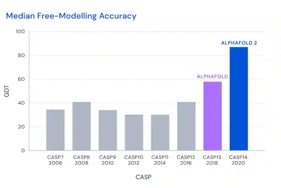 那年,AlphaFold2成功解决了蛋白质折叠问题,将准确性提升到了92.4。