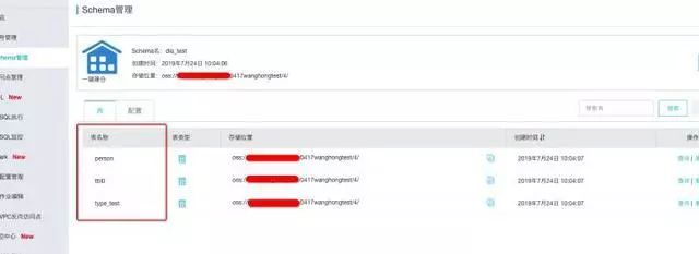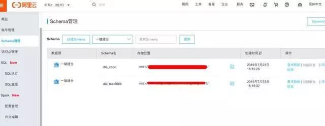 首先打开DLA的Schema管理页面(免费开通DLA服务: