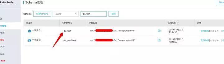 所有输入框有输入完毕之后点击“创建”就完成了创建操作,然后我们可以去Schema列表去查看我们通过一键建仓创建出来的这个新的Schema: