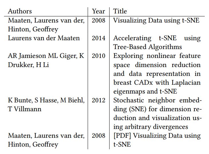 表 3:在Google Scholar中输入“t-sne”显示的前5个搜索结果。