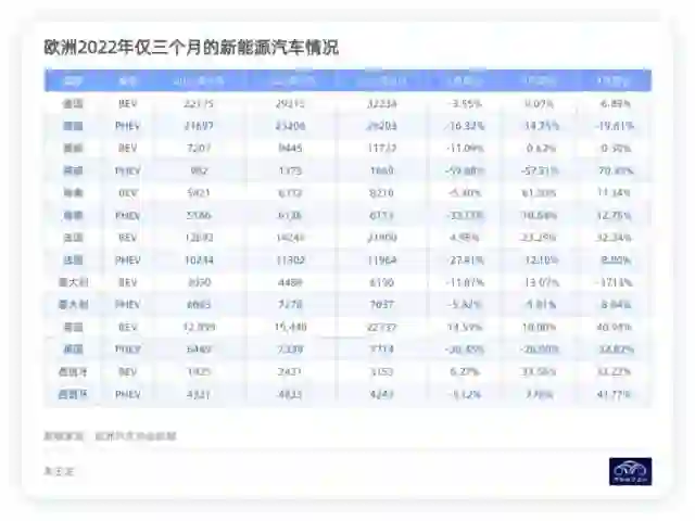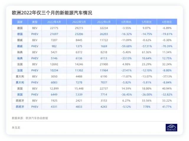 欧洲2022年4-6月新能源车销售情况,图源水印