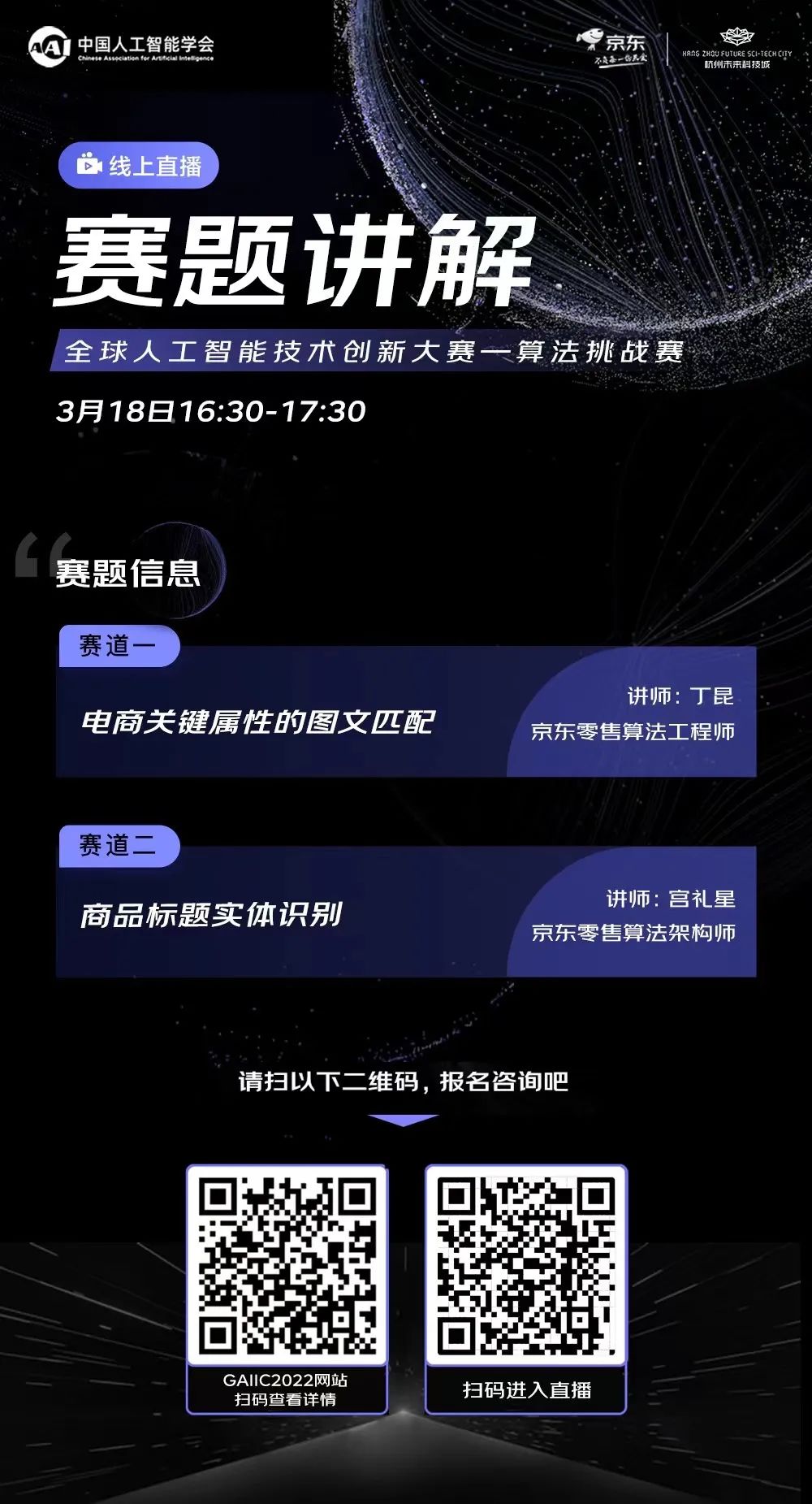 由中国人工智能学会和杭州市余杭区人民政府主办,杭州未来科技城管委会和京东零售联合承办的「2022 全球人工智能技术创新大赛—算法挑战赛」报名通道已开启。