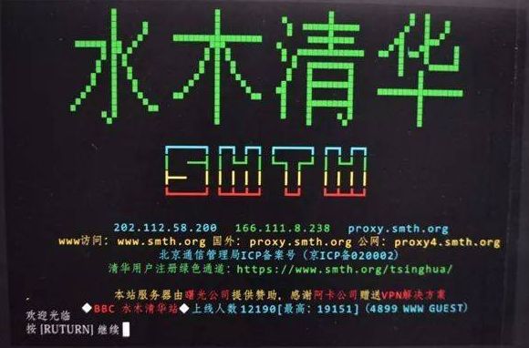 1995 年,中国第一个校园 BBS 诞生 —— 清华大学 “ 水木清华 ”建立了,在此之后,高校 BBS 在大学里迅速成了学生生活最主要的网络娱乐基地。