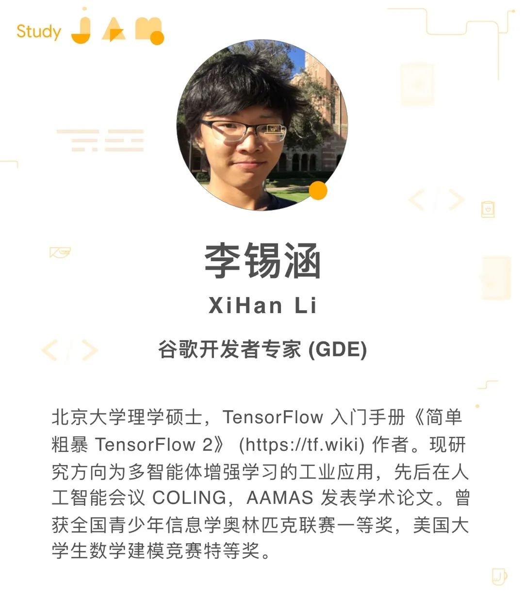 本次课程的设计作者是机器学习方向的 GDE 李锡涵和联合作者李卓桓。本次课程由 TensorFlow User Group (TFUG) 与谷歌开发者社区 (GDG) 全程支持。