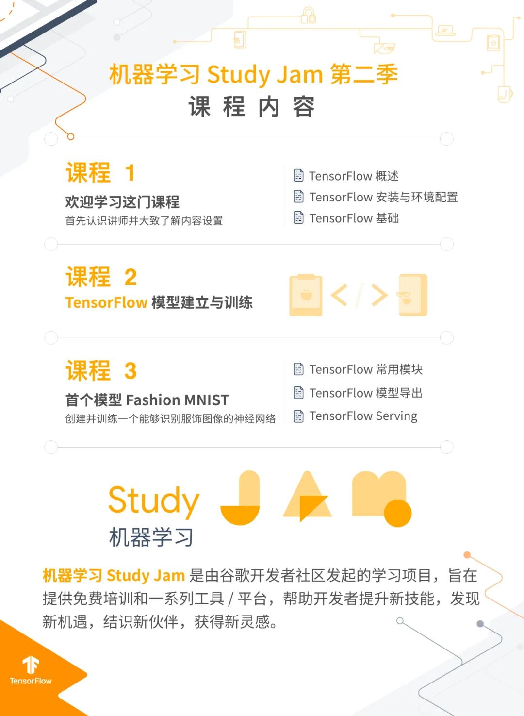 机器学习 Study Jam 是由 GDG 和 TFUG 发起的机器学习项目,旨在提供免费培训和一系列工具/平台,帮助开发者提升新技能,发现新机遇,结识新伙伴,获得新灵感。