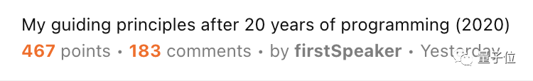 一位20年老程序员分享的编程经验突然火了,在Hacker News上,一天之内就收获了467热度。