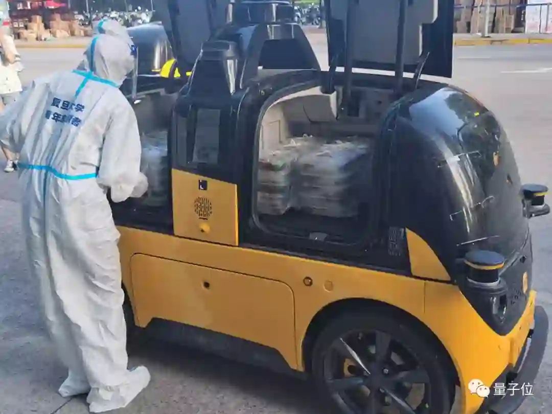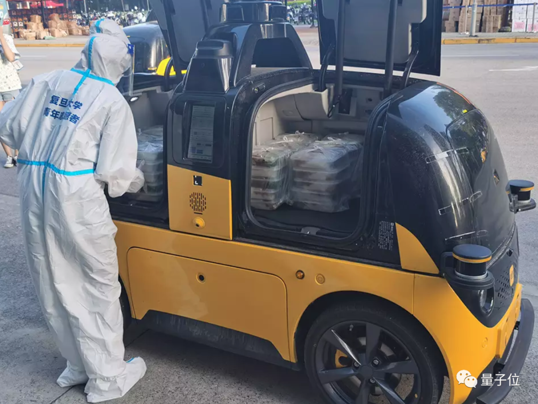 流程上,先由校内志愿者在食堂门口将餐盒放入车厢内,再由小车根据提前设定路线,自主行驶至校内各宿舍楼进行配送,最后在宿舍楼下由志愿者取出餐盒。截至目前,驰援上海的自动配送车队已落地社区、医院及高校三个场景,累计配送订单超过1万单。