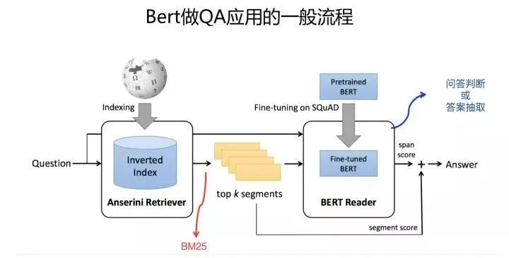 目前不同的在 QA 领域利用 Bert 的技术方案大同小异,一般遵循如下流程: